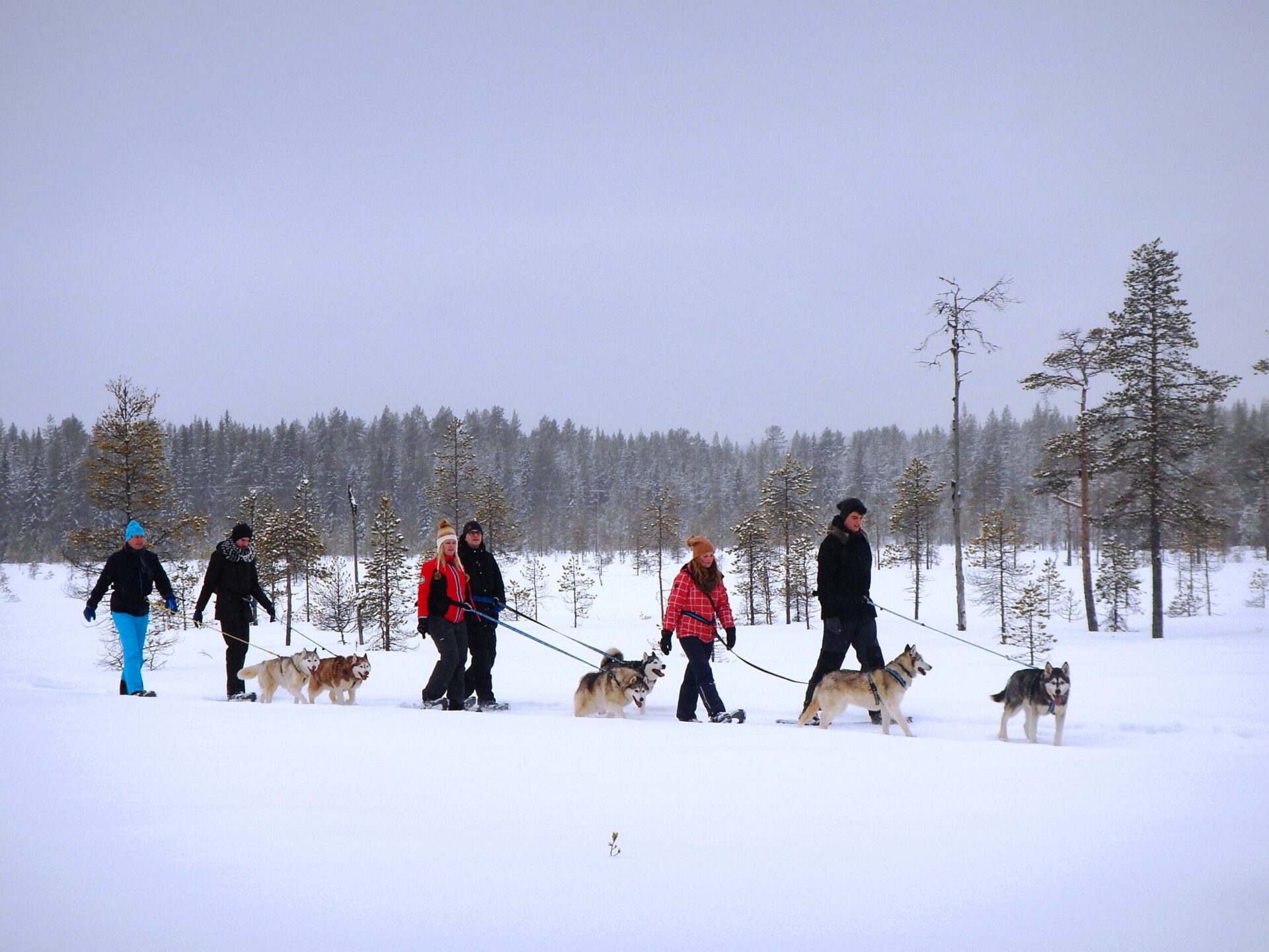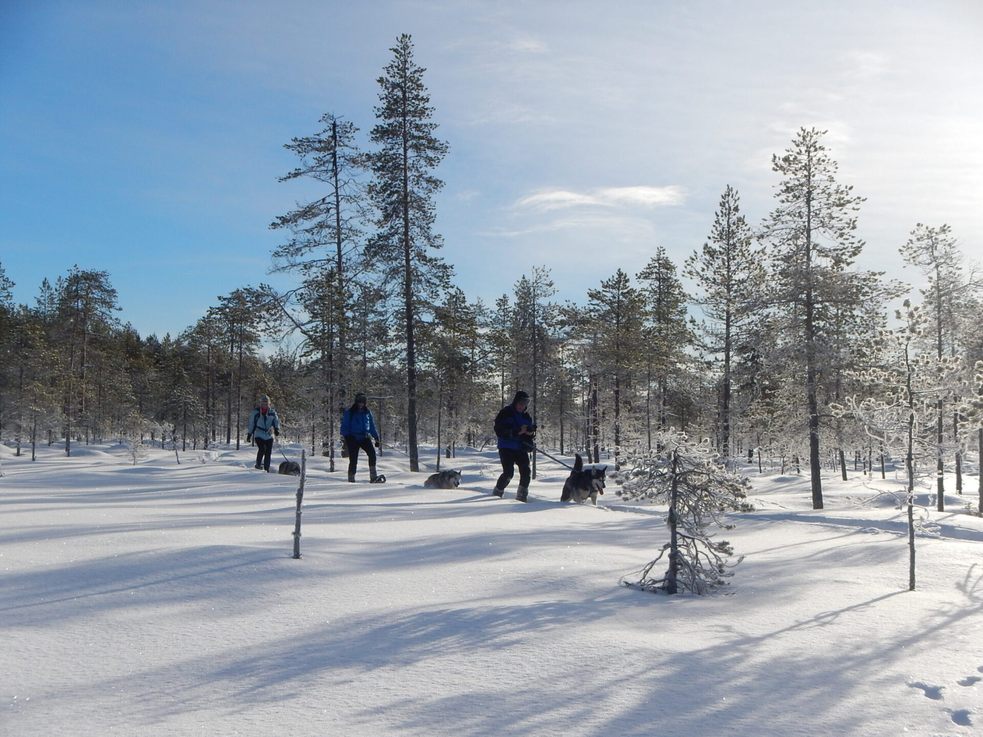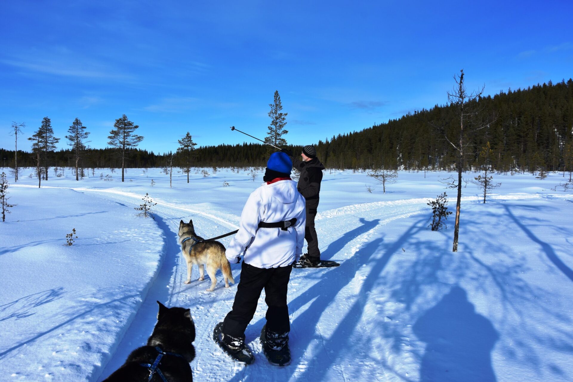 Eine wunderschöne Schneeschuhwanderung in Begleitung mit unseren Huskys in der herrlich verschneiten Natur in Åsele.